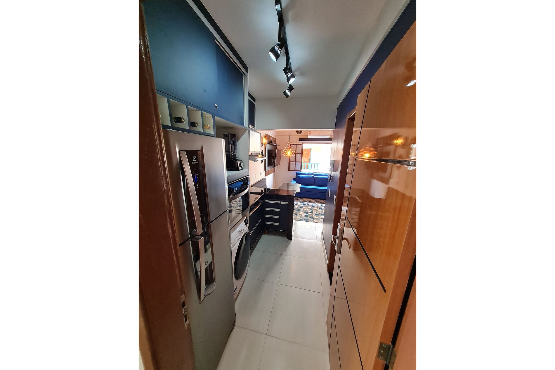 AMBIENTE 2 - COCINA - Una coqueta y acogedora cocina americana que te permite ver la televisión o incluso escuchar buena música mientras preparas tus comidas diarias. Está completo y equipado con todo lo necesario para disfrutar de unos días increíbles con nosotros. Frigorífico, microondas, filtro de agua, sandwichera, batidora, cafetera eléctrica y de botella, tortilladora, triturador de ajos, pava eléctrica, exprimidor, horno eléctrico, campana, armarios empotrados, lavadora y secadora, anafe, fregadero, menaje como platos, vasos (jugo/agua, whisky, cerveza, vino, vino espumoso, copas, vasos y utensilios para niños), cubiertos, tazones, artículos para el almuerzo, la cena y el desayuno, frutero, abridor de vino, soporte para vino, cubo de cerveza, artículos básicos de cocina como sal, café, azúcar, especias, aceite de oliva y artículos básicos de limpieza como trapo, paño de cocina, desinfectante, escobas, escobillas de goma, recogedor.