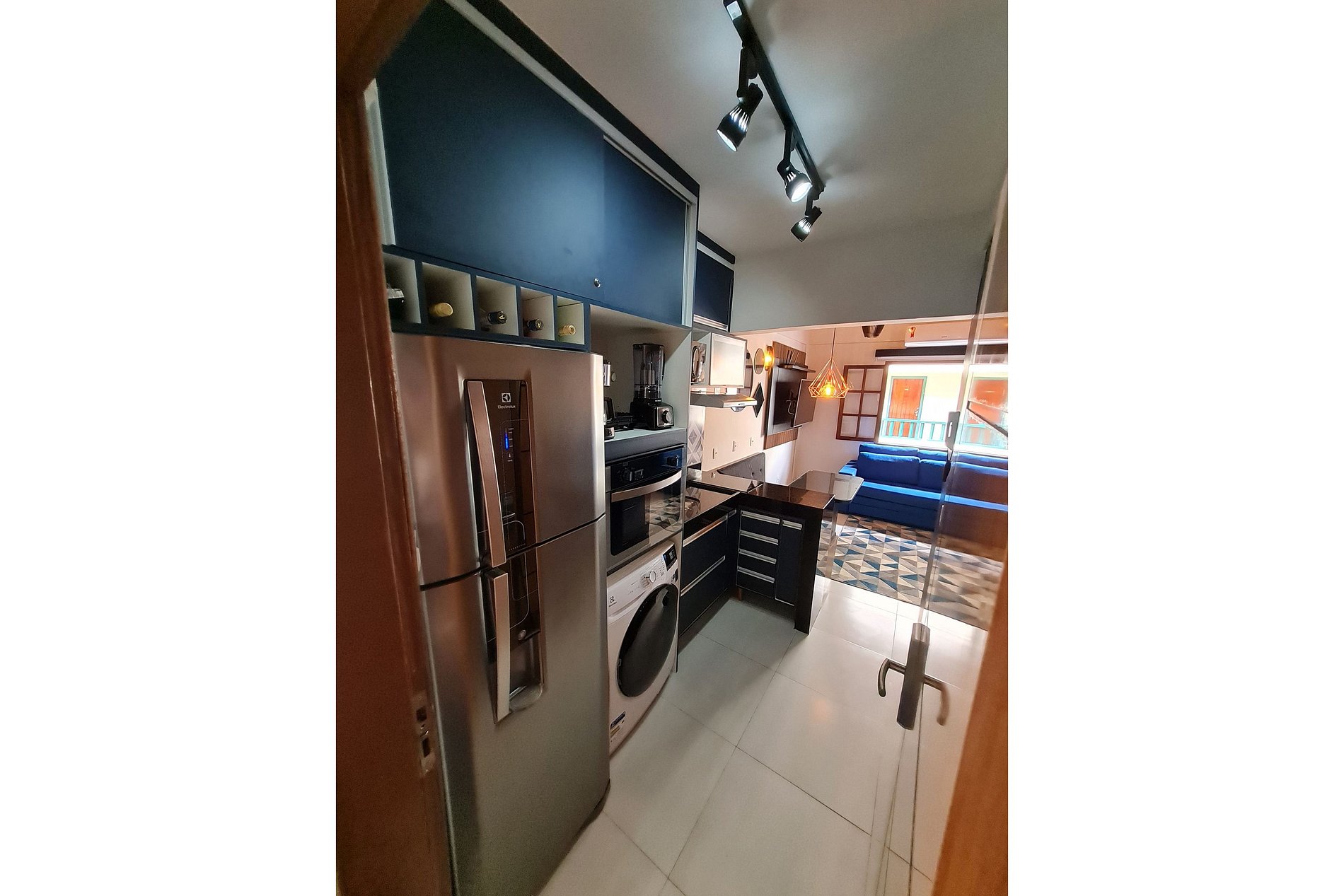 AMBIENTE 2 - COCINA - Una coqueta y acogedora cocina americana que te permite ver la televisión o incluso escuchar buena música mientras preparas tus comidas diarias. Está completo y equipado con todo lo necesario para disfrutar de unos días increíbles con nosotros. Frigorífico, microondas, filtro de agua, sandwichera, batidora, cafetera eléctrica y de botella, tortilladora, triturador de ajos, pava eléctrica, exprimidor, horno eléctrico, campana, armarios empotrados, lavadora y secadora, anafe, fregadero, menaje como platos, vasos (jugo/agua, whisky, cerveza, vino, vino espumoso, copas, vasos y utensilios para niños), cubiertos, tazones, artículos para el almuerzo, la cena y el desayuno, frutero, abridor de vino, soporte para vino, cubo de cerveza, artículos básicos de cocina como sal, café, azúcar, especias, aceite de oliva y artículos básicos de limpieza como trapo, paño de cocina, desinfectante, escobas, escobillas de goma, recogedor.