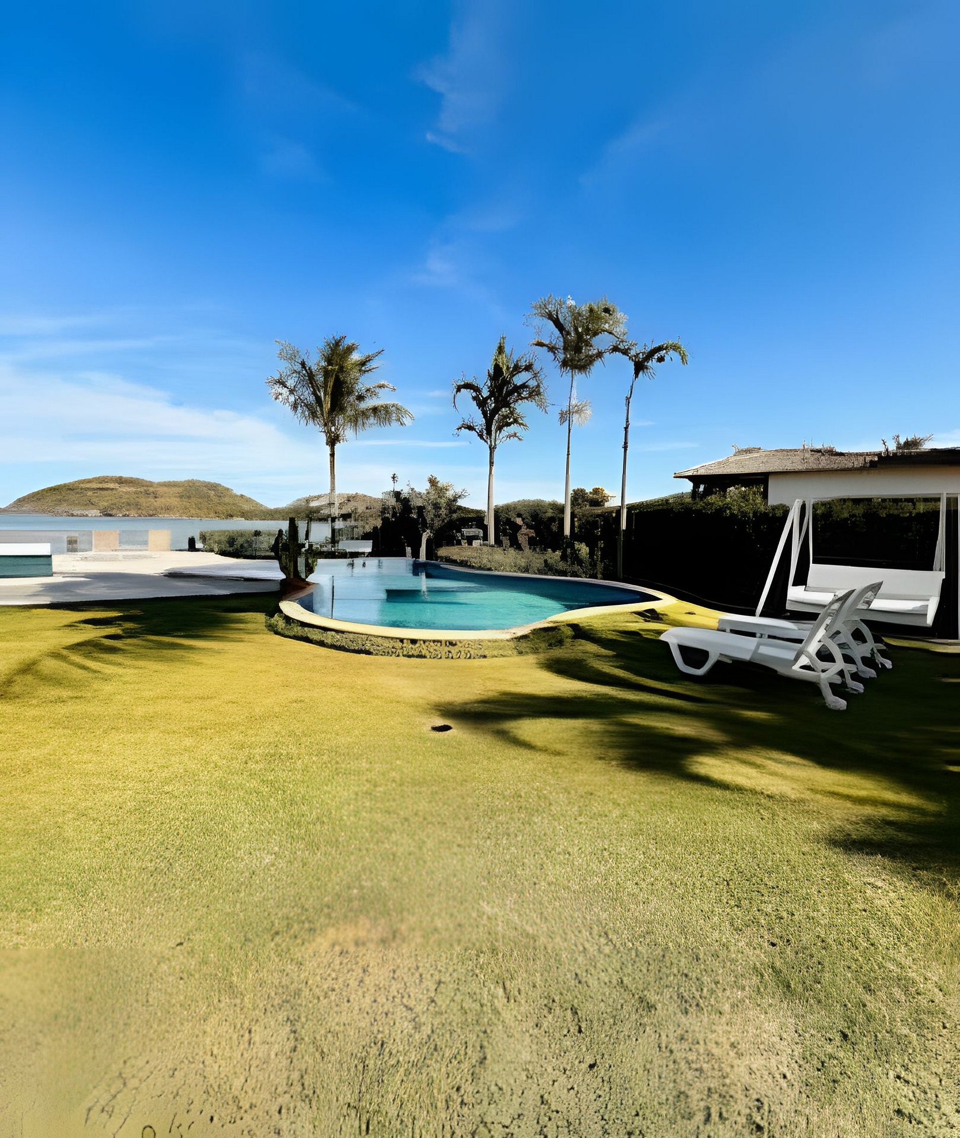 Bem-vindo ao seu refúgio exclusivo em Búzios! Imagine acordar com o som do mar, tomar café da manhã com os pés na areia e terminar o dia assistindo ao pôr do sol na sua piscina privativa, de frente para a deslumbrante Praia da Ferradura. Essa casa de luxo foi pensada para proporcionar momentos únicos de descanso, lazer e sofisticação. A Casa Com 450 m² de área, ampla e arejada, a propriedade une design elegante, conforto absoluto e localização privilegiada. São 5 suítes espaçosas, todas climatizadas, garantindo privacidade e aconchego para até 13 hóspedes em 9 camas confortáveis. Além disso, a casa dispõe de 6 banheiros, sala de cinema exclusiva, lareira aconchegante para noites especiais e área gourmet com churrasqueira, perfeita para reunir família e amigos. Experiência à beira-mar A grande estrela é sua piscina com vista panorâmica para o mar, que convida a relaxar a qualquer hora do dia. Com acesso direto à praia, você viverá a experiência única de estar literalmente pé na areia, cercado pela beleza natural de Búzios. Infraestrutura e Localização • Garagem para 4 carros • Ar-condicionado em todos os ambientes • Localização estratégica: apenas 5 minutos do centro de Búzios e da Rua das Pedras, onde estão os melhores restaurantes, bares e lojas da cidade. Diferenciais que encantam • Cinema privativo para sessões inesquecíveis • Ambientes integrados, iluminados e com vista privilegiada • Lareira para noites aconchegantes • Área externa com churrasqueira perfeita para confraternizações Por que escolher esta casa? Porque aqui você não está apenas alugando uma hospedagem — está garantindo dias de conforto, exclusividade e memórias inesquecíveis. Seja em família ou entre amigos, cada detalhe foi pensado para que sua estadia em Búzios seja simplesmente perfeita. Localização: Praia da Ferradura – Búzios, RJ Venha viver o melhor de Búzios em uma casa que reúne sofisticação, lazer e a energia única de estar frente ao mar. Sua experiência dos sonhos começa aqui!
