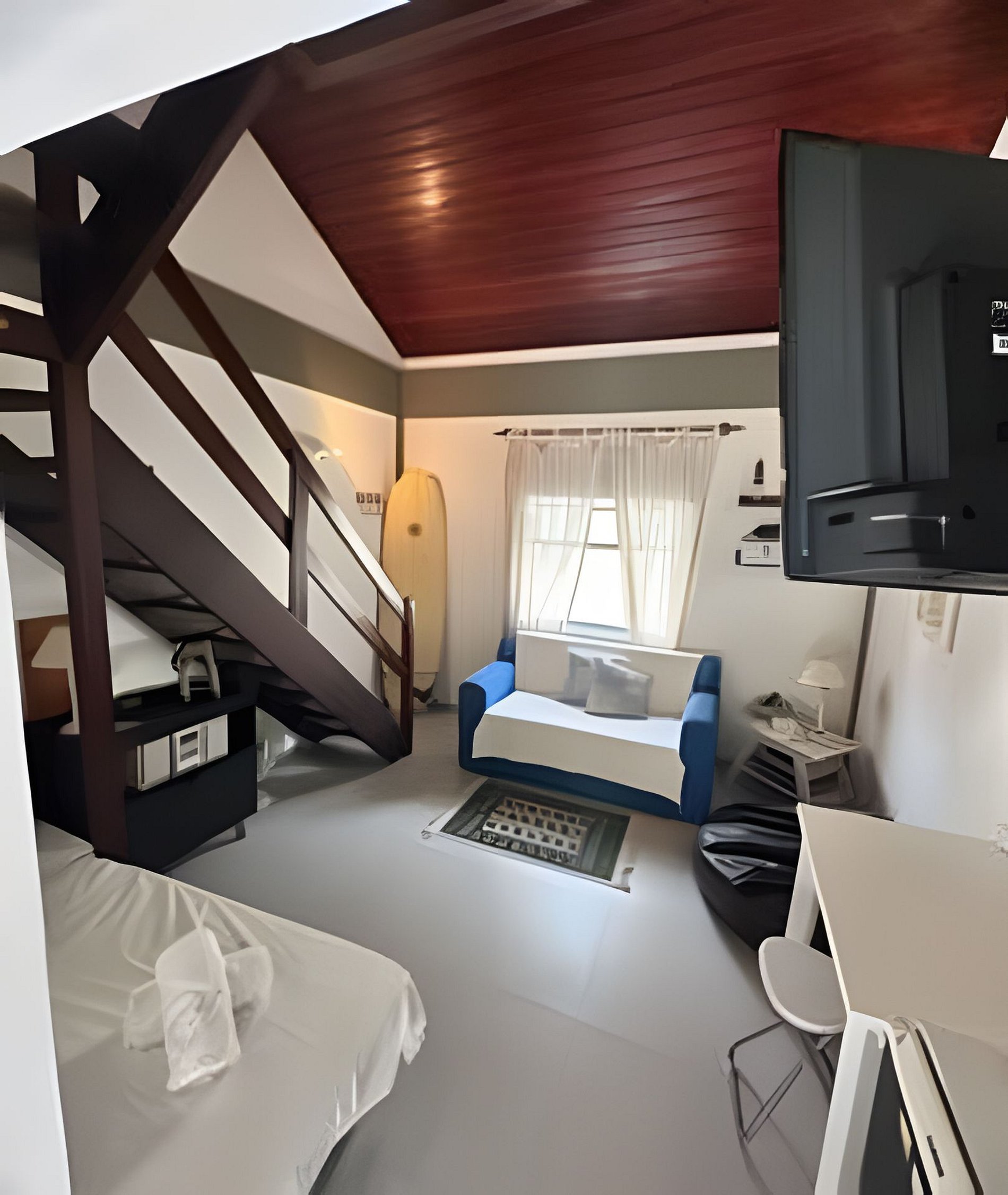 A nossa acomodação entrega a você e sua família a mais completa experiência na charmosa Praia do Peró em Cabo Frio. A propriedade está situada à BEIRA MAR dentro do Condomínio FLAT ÂNCORA e conta com piscina, chuveiro externo, deck com vista para a praia, restaurante, salão de jogos, recepção com funcionários 24h e garagem privativa. Aqui você não precisa de carro para conhecer as praias do Peró e das conchas e vai estar próximo das principais cidades como BÚZIOS, CABO FRIO E ARRAIAL DO CABO. O FLAT é mobiliado, decorado e equipado para que você DESFRUTE de dias incríveis. Ele acomoda até 5 pessoas (incluindo crianças e bebês) de modo confortável e dispõe de quarto mezanino com ar condicionado, cortina blecaute, cama de casal, lavabo, frigobar, mesa de trabalho com cadeira e iluminação, TV e uma cômoda. A sala dispõe de sofá-cama de 2 lugares, uma cama de solteiro, ventilador, frigobar, cortina, janela com vista para a rua, mesa para refeições. A cozinha fogão elétrico de 1 boca, microondas, sanduicheira, cafeteira, liquidificador, petisqueira. Além disso, temos copos, talheres, panelas e itens básicos como sal, azeite, café e açúcar. O banheiro conta com um delicioso chuveiro quentinho para você relaxar depois de um dia de passeio. Ainda, para maior conforto, oferecemos aos nossos hóspedes kit primeiros socorros, sabonete mãos, travesseiros, mantas e edredom, SECADOR DE CABELO, FERRO DE PASSAR ROUPAS, cooler e guarda-sol, WI-FI GRATUITO.